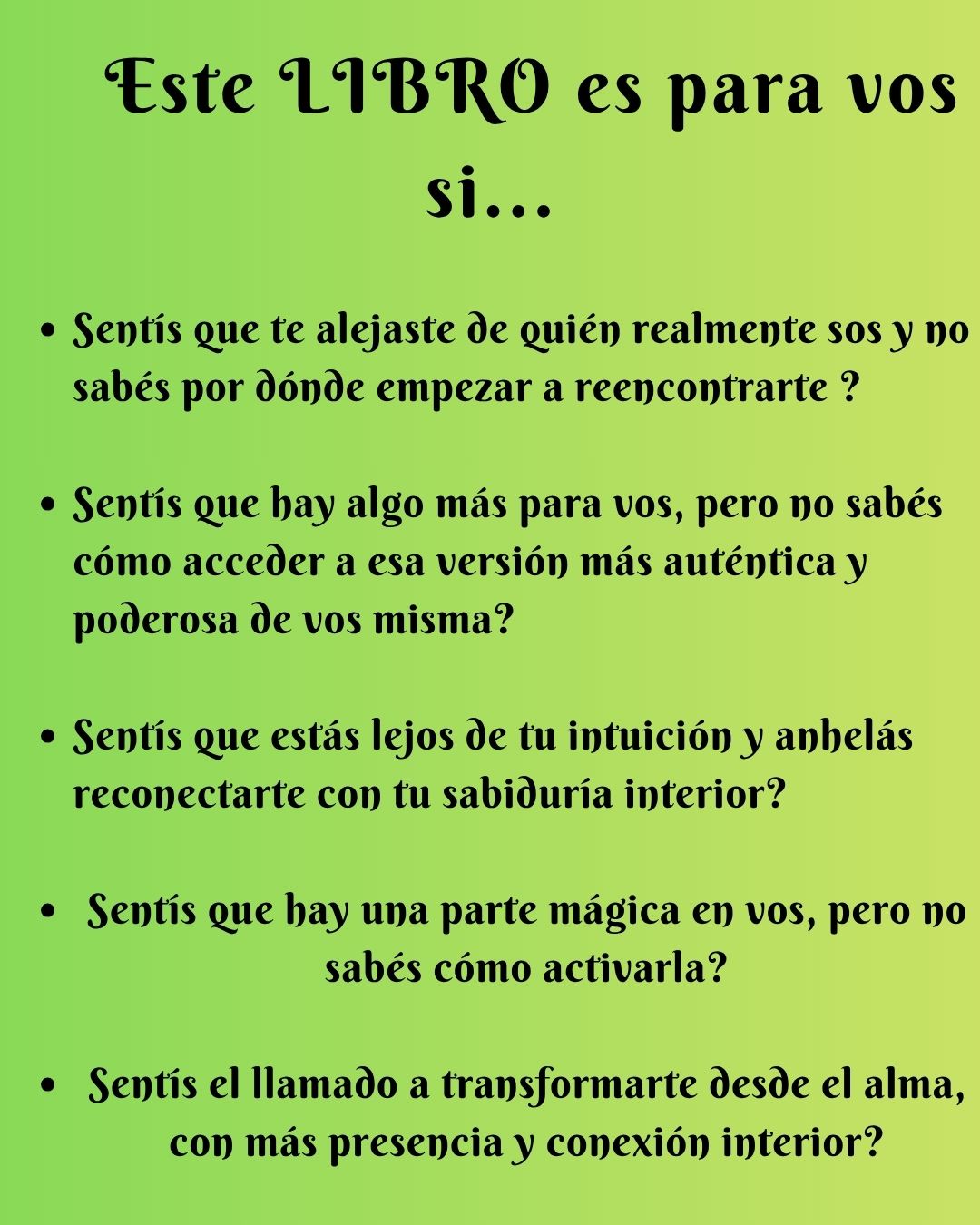 No es un libro pasivo. Este material te habla y te mueve. Vas a encontrar reflexiones, activaciones, ejercicios simples pero potentes, y preguntas que te van a sacudir el alma (en el mejor sentido).